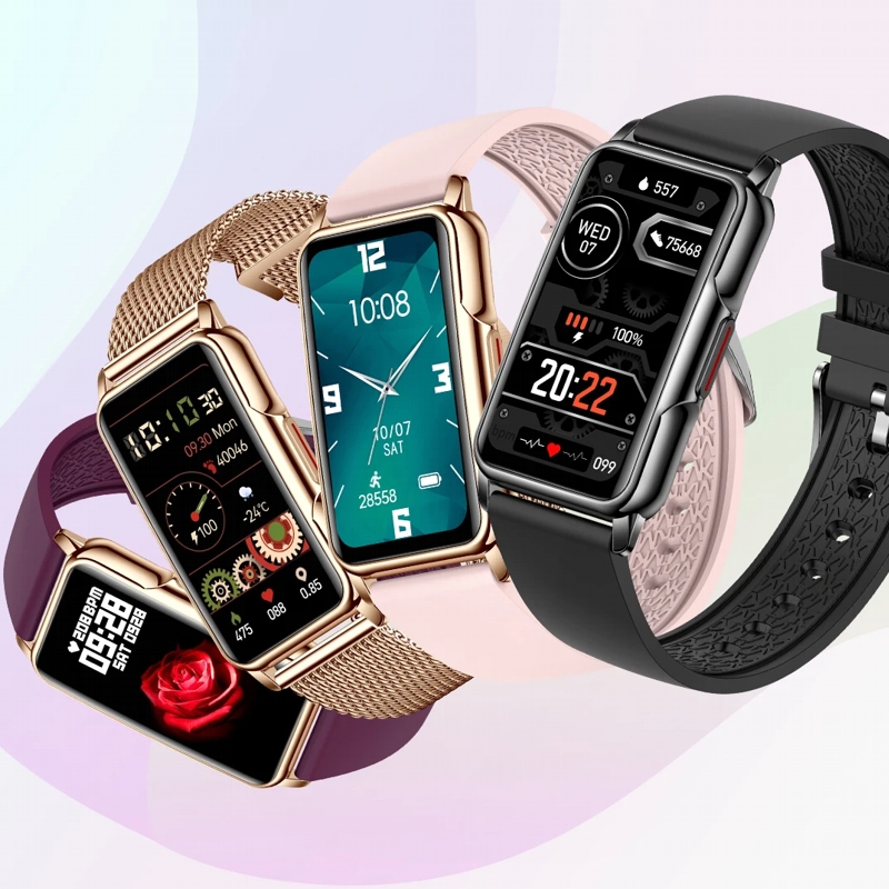 Main functions: exercise record (step counting, distance, calorie calculation), exercise mode, message push, information storage, heart rate monitoring, sleep monitoring, blood pressure measurement, blood oxygen saturation measurement, stopwatch, camera control, music control, 1.47-inch color screen Touch the display.