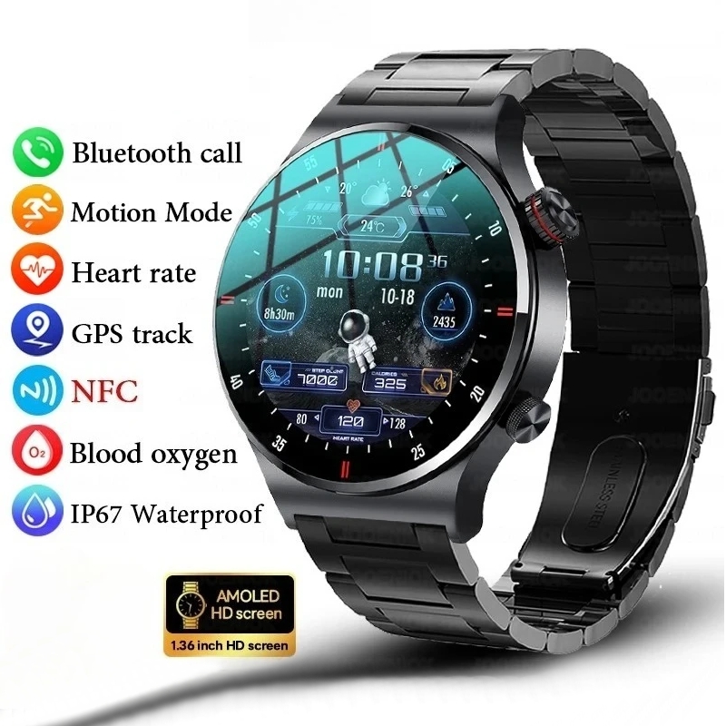 Main functions: date/week display, weather push, physiological cycle (app-gender is set to female only), countdown, card management, remote camera, sedentary reminder, step counting, distance, calories, heart rate/blood pressure/blood Oxygen/Pressure/ECG/Sleep Monitoring, Bluetooth Music Control, Call Reminder, SMS Reminder, Social APP Message Reminder, Alarm Reminder, Exercise Mode, Raise Hand to Brighten Screen, Find Phone, Stopwatch, Reject Call, Do Not Disturb Mode, and more Dial switching, brightness adjustment, firmware upgrade, etc.