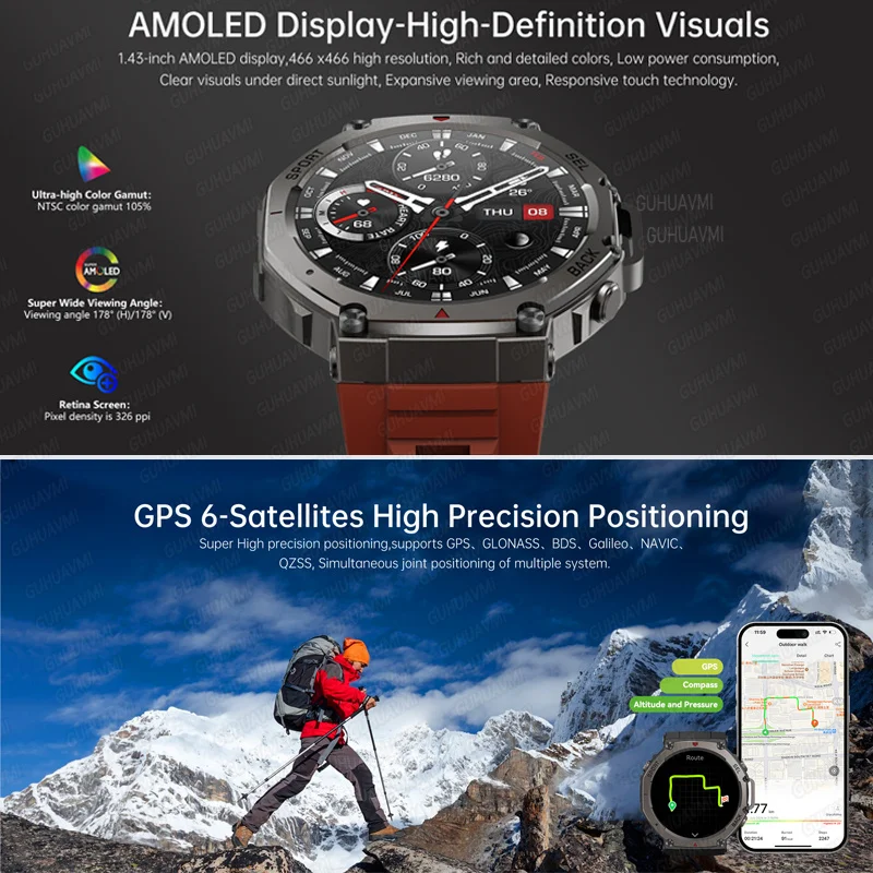 | T-Rex 3 GPS Smart Watch 5 ATM Waterproof Built-in Dual-band GNSS Compass Military Sport Smartwatch Men 2025 New for Xiaomi | T-Rex 3 GPS Smart Watch For Men Smartwatch Compass Altimeter Barometric 5ATM IP69K Waterproof AMOLED Mens Watches, New Smart Watch 466*466 1.43 AMOLED Full Touch Screen 5ATM waterproof GPS 500mAh High Battery Compass 170+ Sports Modes For Men |