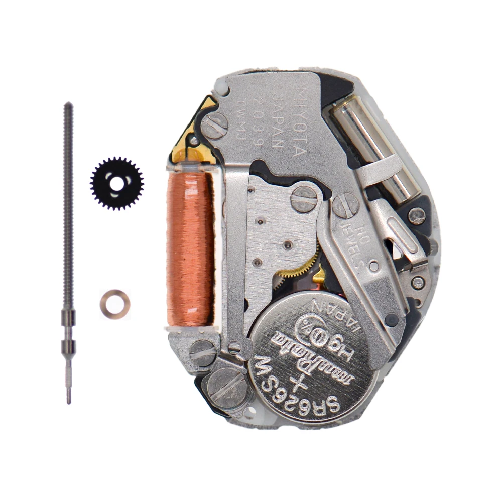 Miyota 2039 Genuine Quartz Watch Movement 3 Hands Battery Stem Included. Outside Diameter: 6 3/4 x 8 Ligne or 15.3 x 17.8 mm. Wholesale 20/pcs.